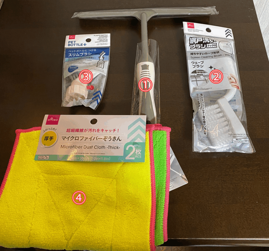 - 100均アイテムだけで窓ガラス・網戸・サッシを短時間で効率よく掃除できる。