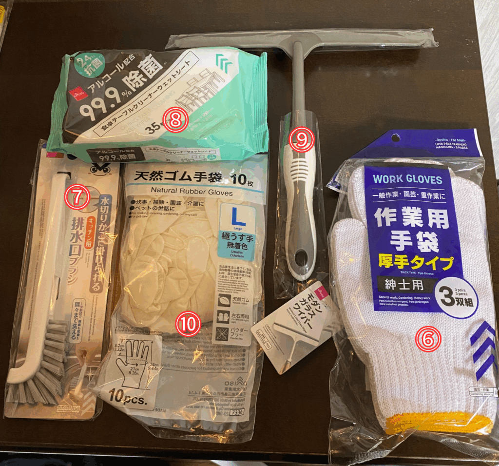 | ⑥使い捨て手袋 | 手荒れ防止&衛生的🧤 | 掃除後はそのまま捨てられて楽! |
